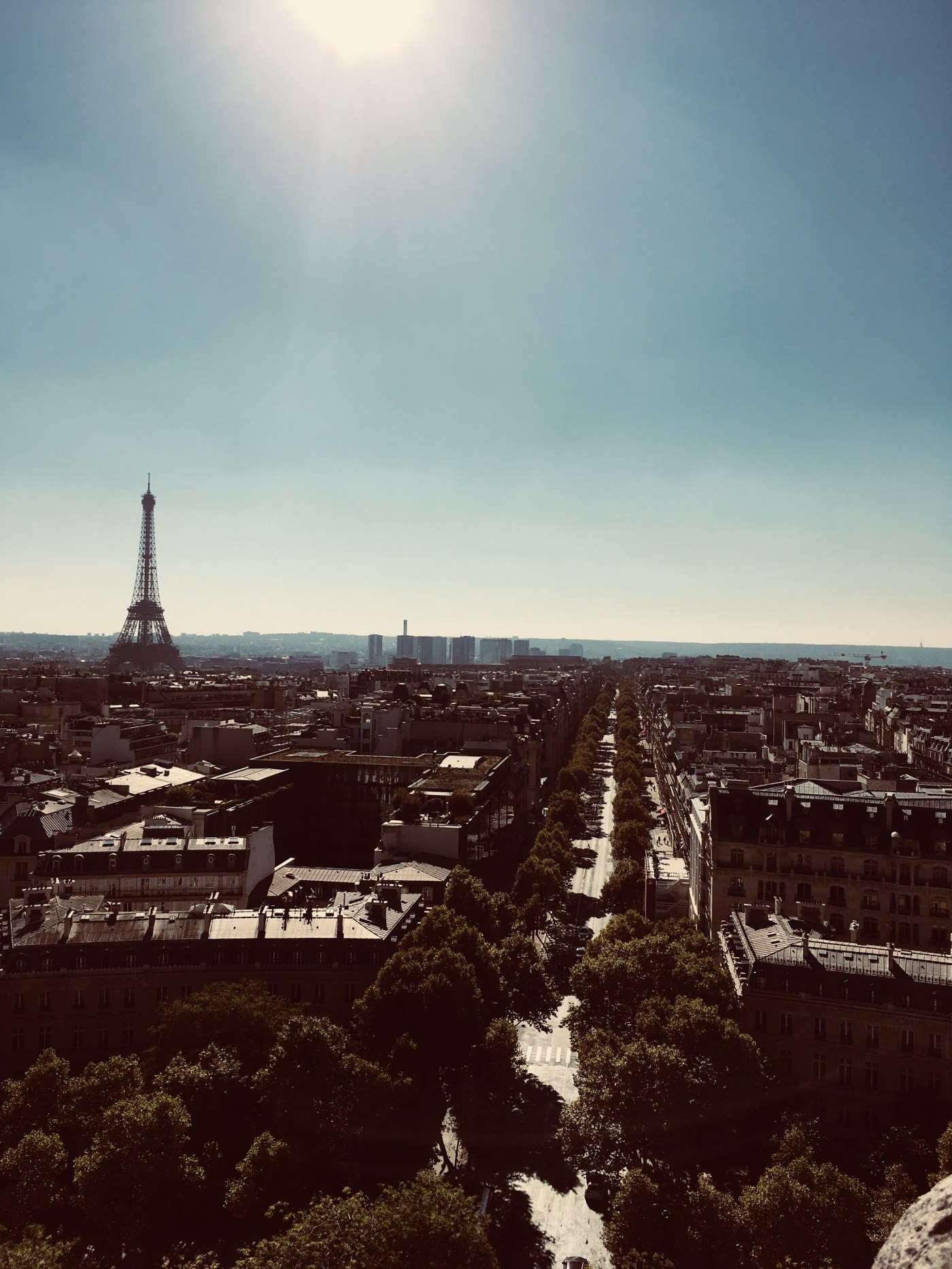 There’s this fantastic contrast, between the absolute chaos that is the roundabout on which the Arc de Triomphe is situated (and it really is chaos, I don’t know how there aren’t at least a dozen collisions daily), evident from the ground; and the symmetrical logic with which Place de L’Etoile and its 12 protruding arms have been designed, appreciable only from an elevated vantage point such as on top of the Arc. With the obvious exception of the Champs Elysees, the roads comprising the 12-pointed ‘star’ are largely calm and quiet, too: peaceful boulevards lined with elegant Parisian apartment buildings and carefully-coiffed trees.